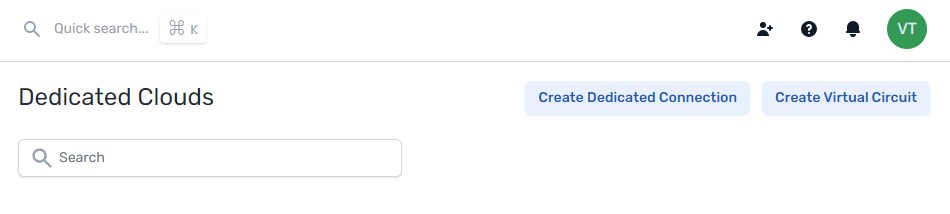 From the Dedicated Clouds page, click Create Dedicated Connection in the upper right: