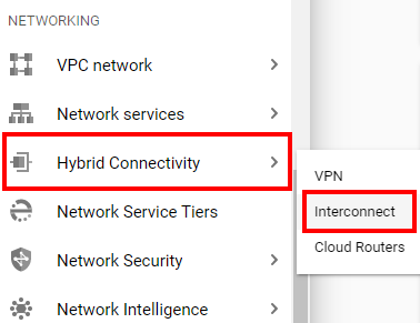 Scroll down to Networking and select Hybrid Connectivity > Interconnect.