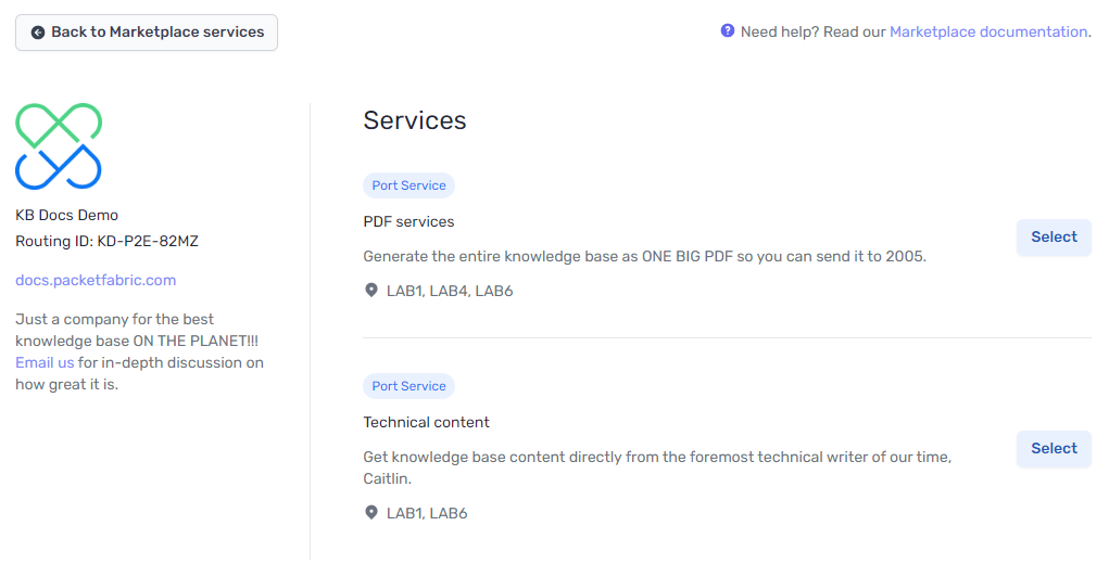 Select a provider to open a list of the services that they provide. Click Select next to the service you are interested in.